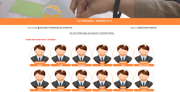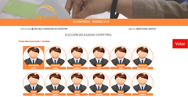 | El usuario, haciendo un clic podrá seleccionar el candidato de su preferencia y realizar su votación. |